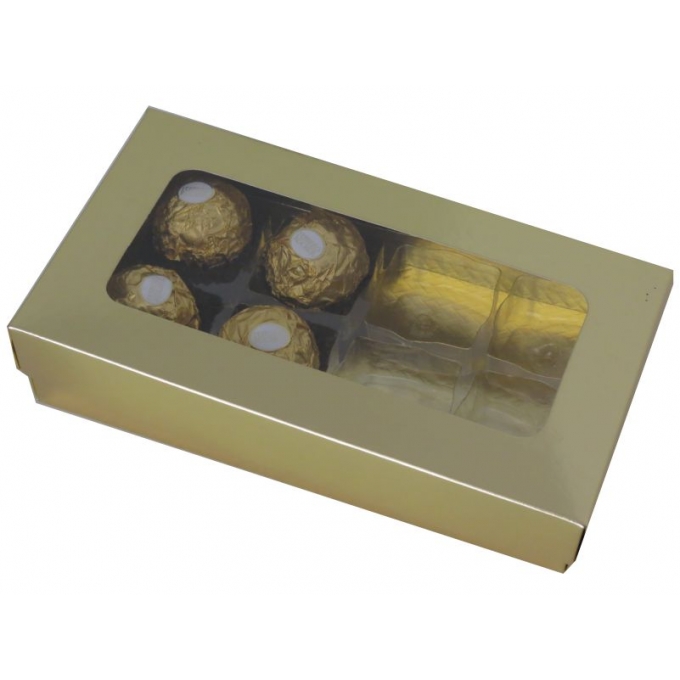 Caixa 08 Bombons em papel duplex metalizado, borda fina e berço Cristal