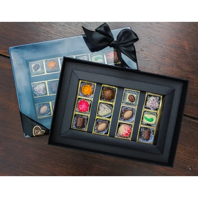 Caixa 12 Bombons em papelão rígido e papel duplex borda extra