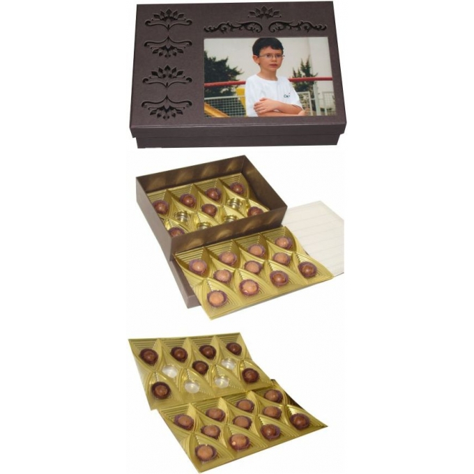 Caixa 22 Bombons retrato em papelão Rígido com recorte a laser - Visor para foto 20 x 25