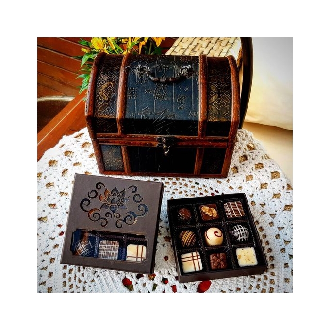 Caixa para 09 Bombons em papelão rígido com recorte a laser