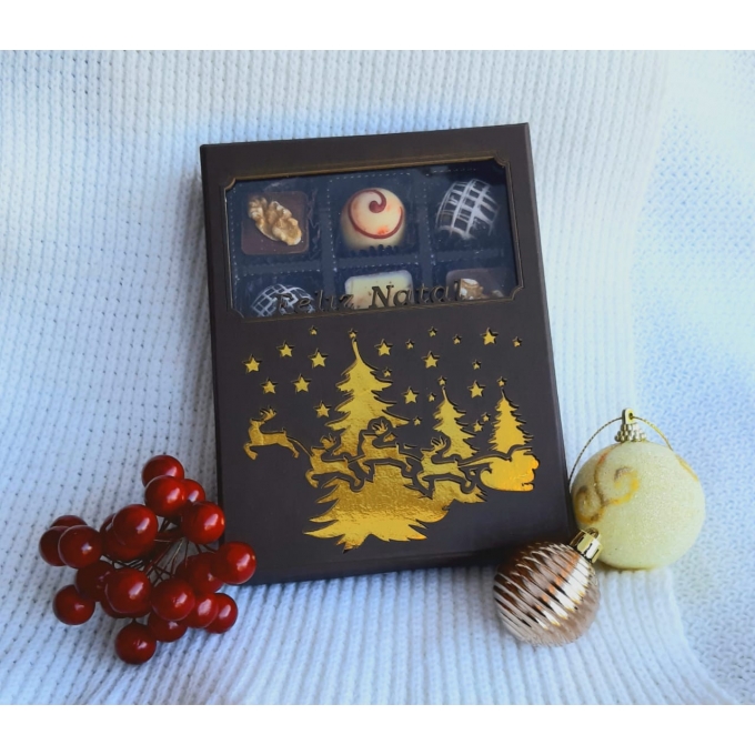 Caixa 12 Bombons em papelão Rígido com recorte a laser e aplique papai noel