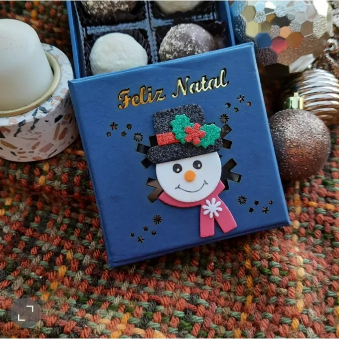 Caixa em papelão rígido com recorte a laser. Med. 8x8x3 Várias cores. Chocolates e adereços meramente ilustrativos.