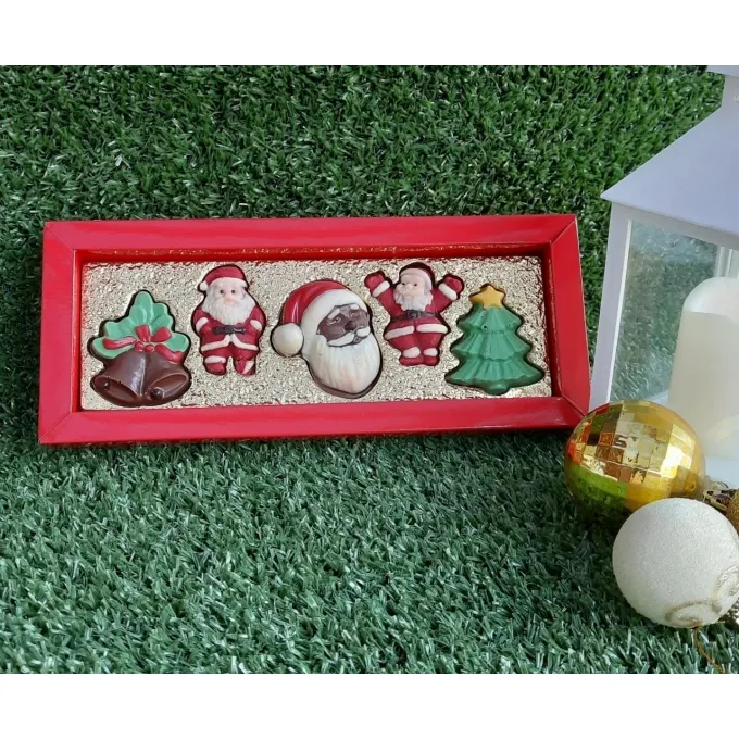Caixa para figuras 5 com borda em papel Duplex e berço ouro metalizado