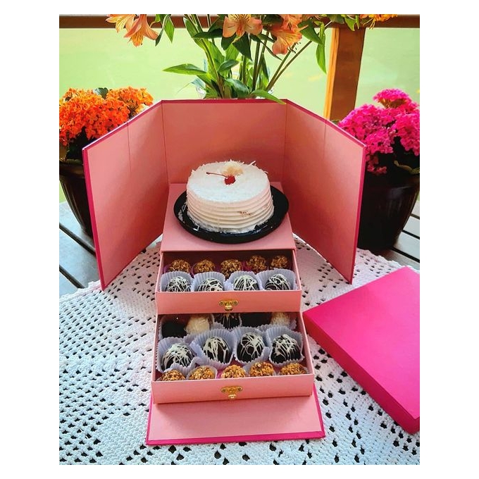 Caixa para bolo ou opcionais com 2 gavetas em papelão rígido