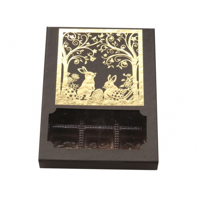 Caixa 12 Bombons quadrada em papelão rígido com recorte á laser e Hot Stamp