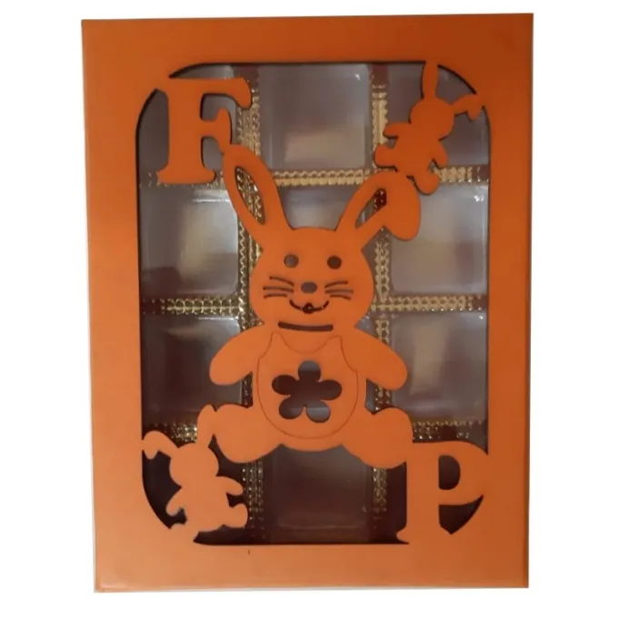Caixa 12 Bombons retangular em papelão rígido, recorte a laser e berço ouro metalizado