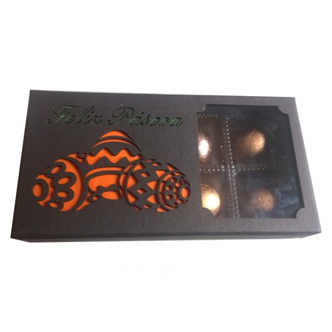 Caixa 8 Bombons em papelão rígido com recorte á laser
