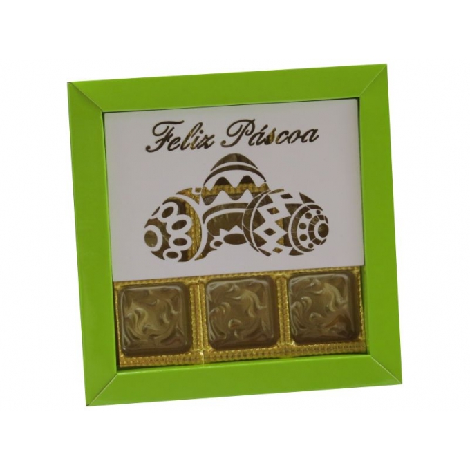 Caixa 9 Bombons com aplique em papel duplex plastificado e berço ouro metalizado