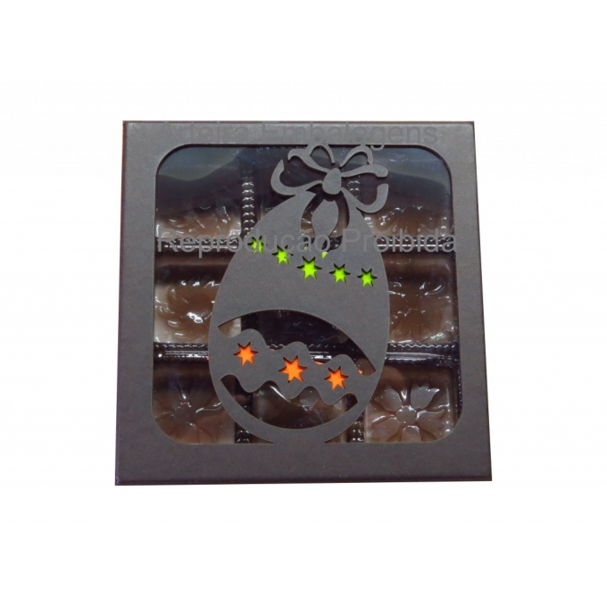 Caixa 9 Bombons em papelão rígido com recorte á laser