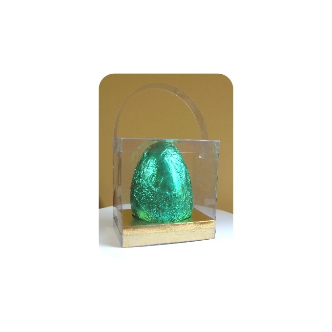 Caixa para ovo pequeno em PVC cristal com berço em papel duplex ouro metalizado