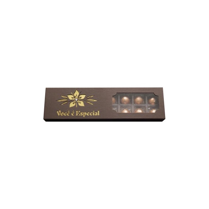 Caixa 16 Bombons comprida flor com strass em papelão Rígido com visor e recorte á laser