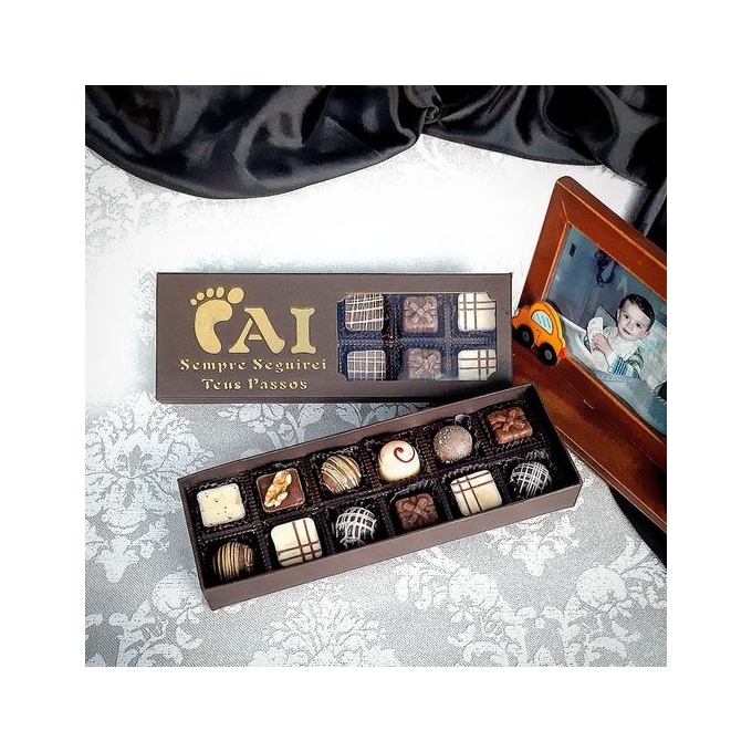 Caixa 12 Bombons pé em papelão Rígido com recorte a laser