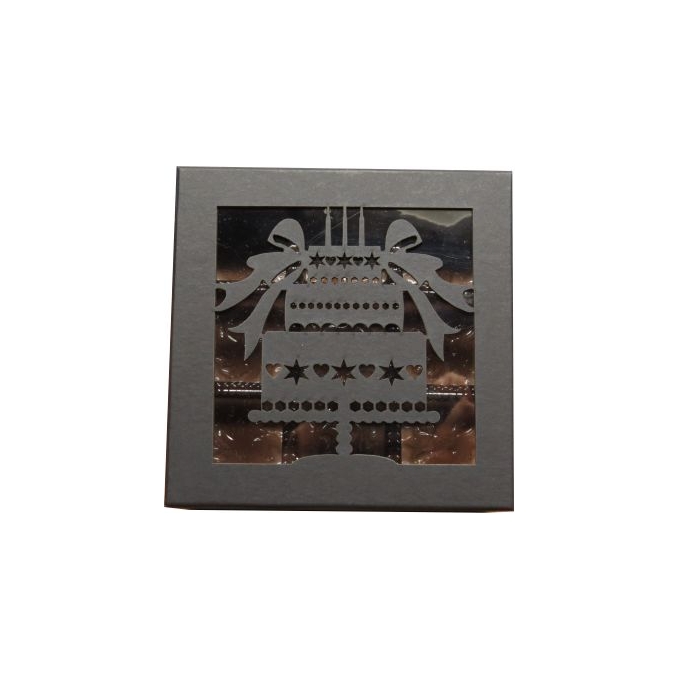 Caixa aniversário para 9 Bombons personalizada em papelão rígido com recorte á laser