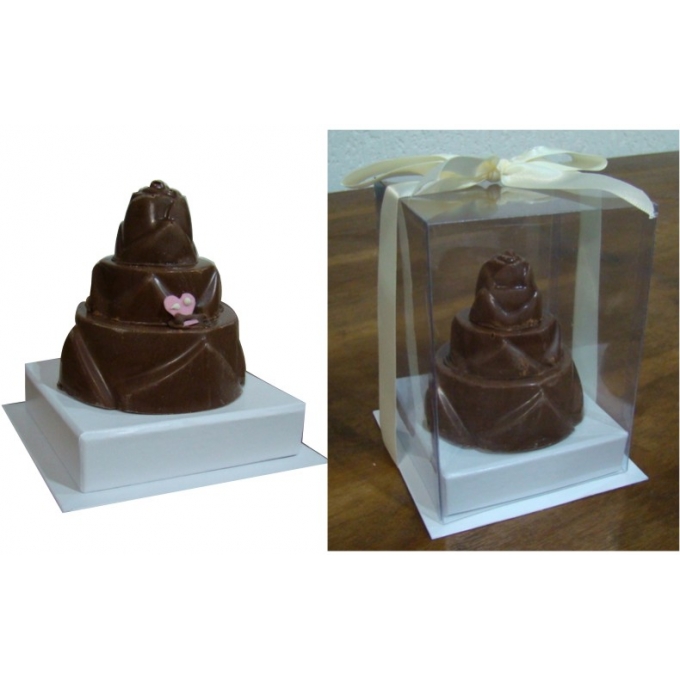 Caixa para mini bolo de chocolate em Papelão rígido com tampa em PVC Cristal