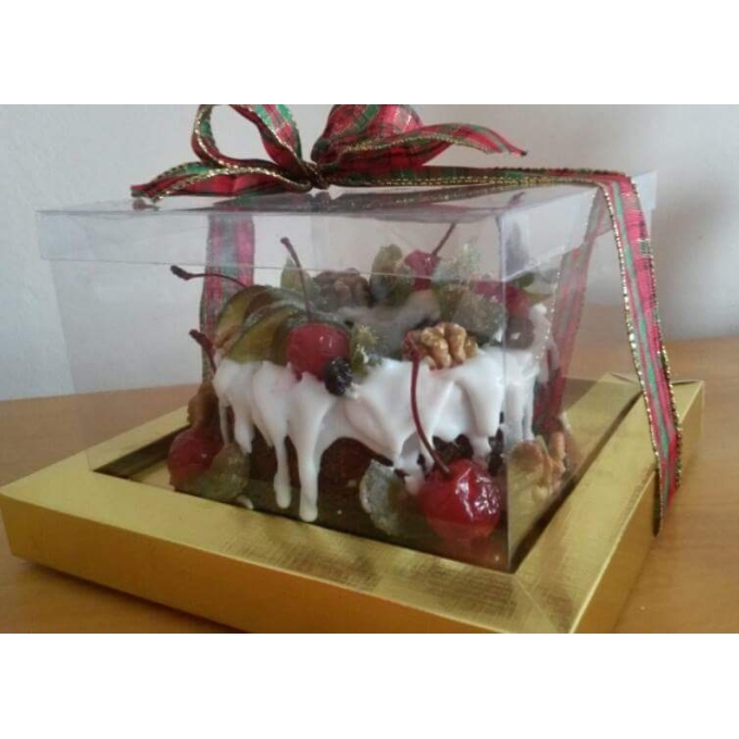 Caixa para bolo pequeno / bolacha em papel duplex metalizado e tampa em PVC cristal interna