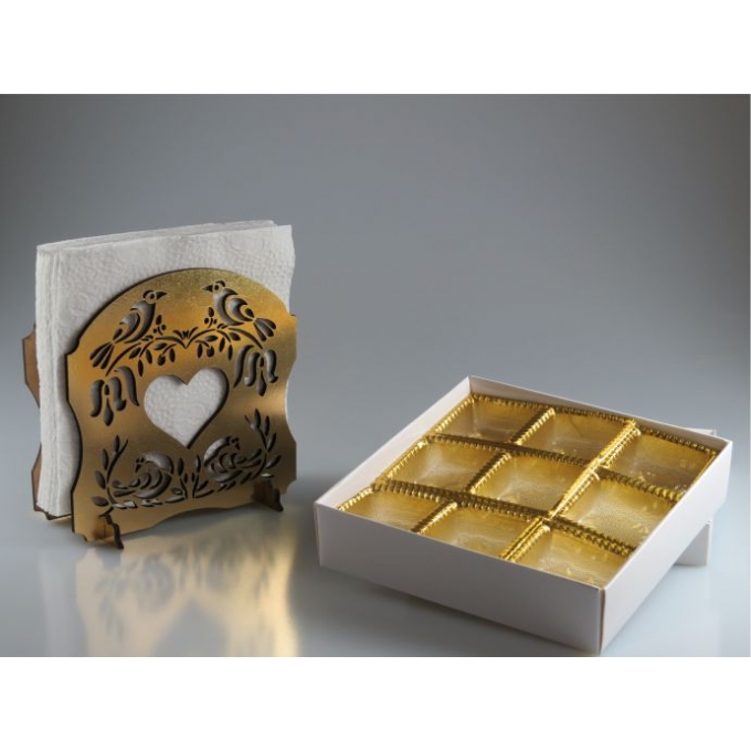 Porta Guardanapos em MDF com recorte á laser com caixa para 9 bombons em papel duplex