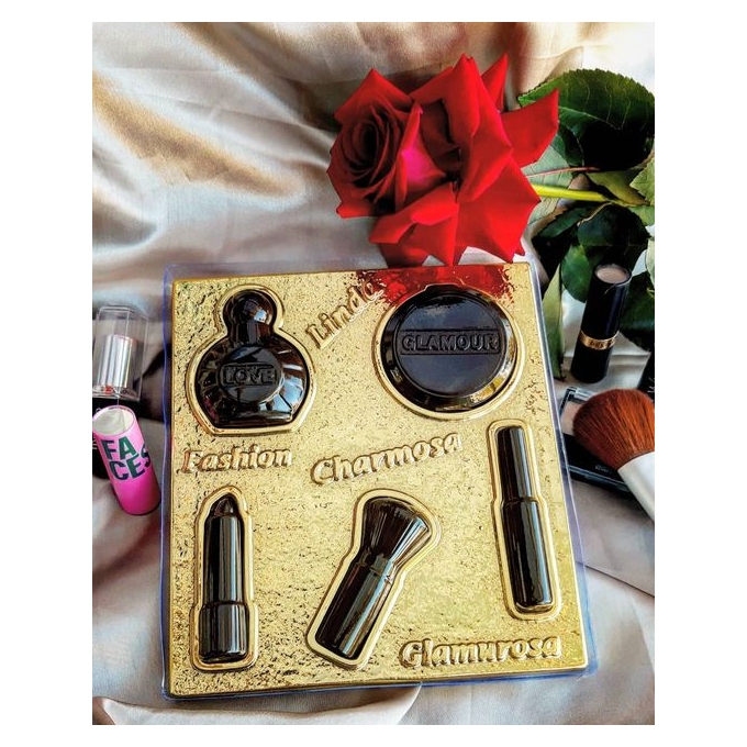 Caixa Beleza em Pet ouro metalizado / Marrom / cristal