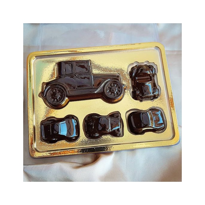 Caixa Carros antigos em Pet ouro metalizado / Marrom / Cristal