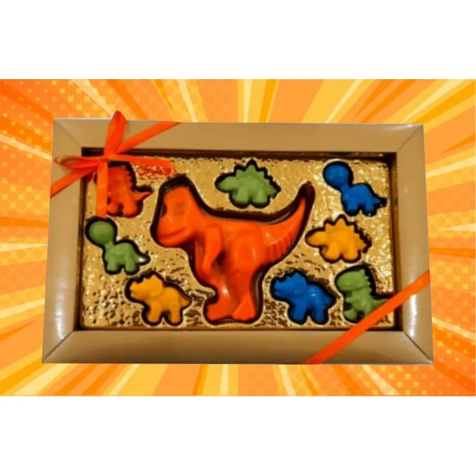 Caixa Dino Rex com borda em papel duplex e berço ouro metalizado