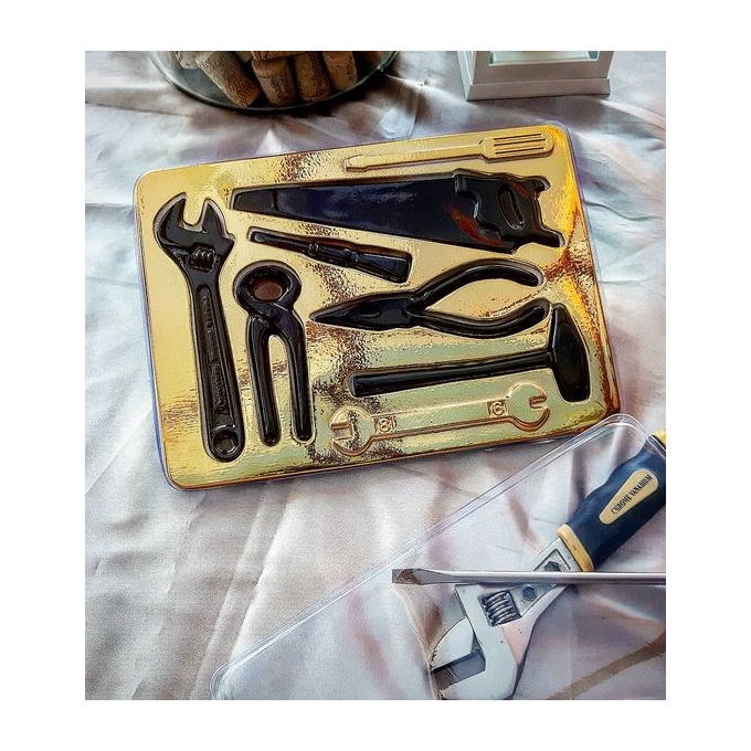 Caixa ferramentas grande em Pet ouro metalizado / Marrom / cristal